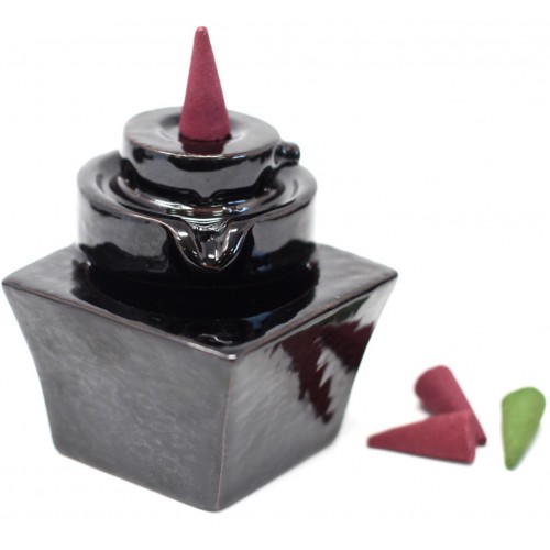 Les Fontaines d'Encens sont spécialement conçues pour créer une cascade de fumée descendante, qui se déverse de façon spectaculaire, créant un effet fascinant et hypnotisant. Un fois le cône d'encens allumé, la fumée créée sera plus dense que l'air environnant, permettant une chute en cascade impressionnante qui se glissera dans tous les recoins prévus à cet effet.